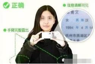拍摄时,将持证的手臂和上半身整个拍进照片,头部和肩部要端正,头发不得遮挡脸部或造成阴影,要露出五官;确保身份证上的所有信息可见、完整;不要化妆,不得佩戴眼镜、隐形眼镜、美瞳拍照;照明光线均匀,脸部不能发光,无高光、光斑,无阴影、红眼等;照片要如实地反映本人近期相貌(未经过PS等照片编辑软件处理,不得拿照片翻拍)。
