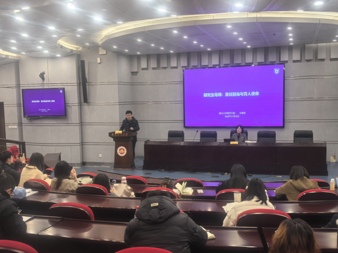 吴晓曼副院长以“研究生导师:责任担当与育人使命”为题展开报告。她从导学关系核心视角,系统梳理了研究生导师制度的起源与发展,深入阐释了新时代导师的责任内涵与育人核心使命。针对当前导师制度面临的新形势与新挑战,吴晓曼明确了导师应具备的基本素质与多重角色定位,并分享了实用有效的研究生指导案例方法。报告着重强调,导师需立足国家战略需求,精准把握人才培养方向,持续优化导学互动模式,为推动研究生教育高质量发展筑牢基础。